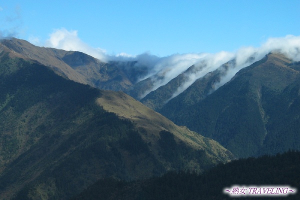 當車駛進山區,隨著山彎路轉,開始領略巴郎山險奇之面,因為車子爬升高度上升很快,須臾間已望見對山的山頂在視線的正前方。