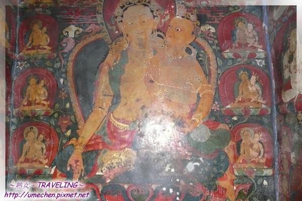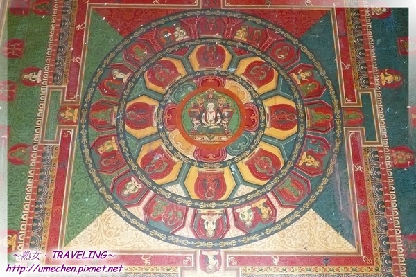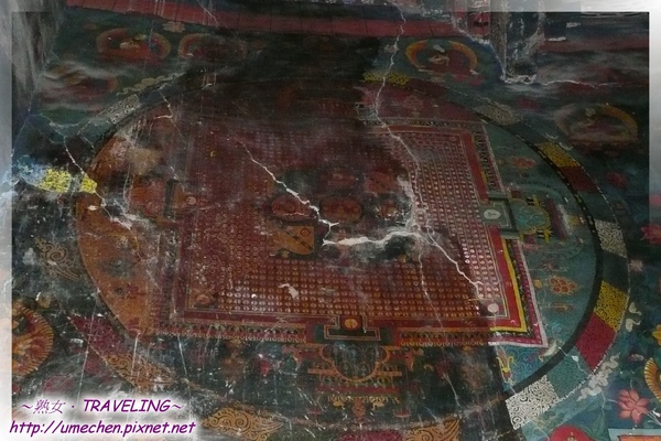 (£十萬佛塔第5層,請欣賞這壁畫:瑜伽密續大壇城,圓形中間的四方形是城,有4個門)