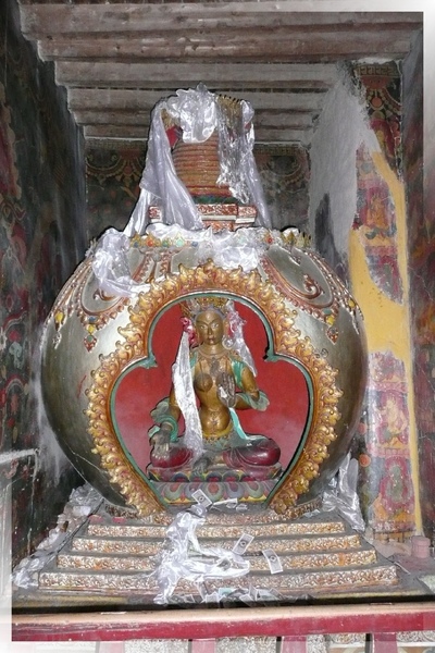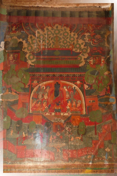(£十萬佛塔第4層,請欣賞此層最大的一個洞窟,裏面全是壁畫:釋迦牟尼佛成佛圖)