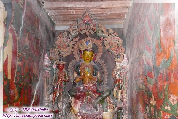 再往上爬到第3層。這層可能有些人能看出一些塑像和壁畫的內容哦!我們在台灣就常提到或比較常見的護法、菩薩在這層最多,像文殊師利、普賢菩薩的塑像就是在這層,雖然第1、2層也可以看到部份,但要抓重點看,所以這層不妨重點放在多看雕像。