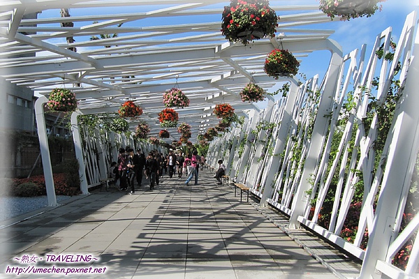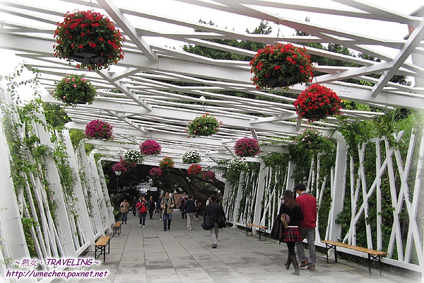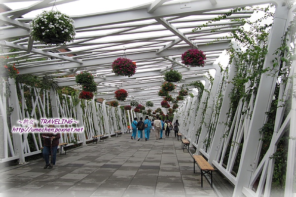兩條「花之隧道」,並不是真正的隧道啦!它們是樹狀的樑柱結構,搭出一條通道來。