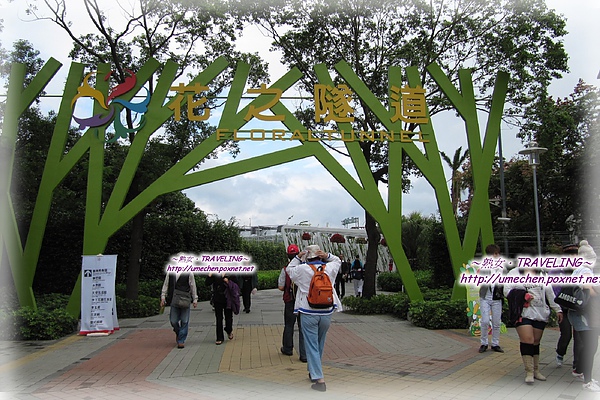 《2010台北.國際花卉博覽會》廣大園區分為四大塊,每個區域都相隔著馬路,為了讓遊客安全地悠遊四大景區,設計了天橋、地下道或通道。其中〝新生公園區〞和鄰近兩個景區的連接,因為剛好都是通過高架橋之下,特別規劃兩座「花之隧道」,讓遊客行走在造景的通道內,不但忘卻了距離和疲累,反而忍不住流連在特殊造形的通道裏,或是停佇欣賞,或是略做休憩。