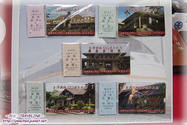 台鐵120週年推出的紀念品,內有5張實體實車票〝湖口至新竹、瑞芳至平溪、吉安至壽豐、追分至成功、永康至保安〞,日期是民國96年6月9日鐵路節當天。另有上述5張車票的5個車站之紀念卡。