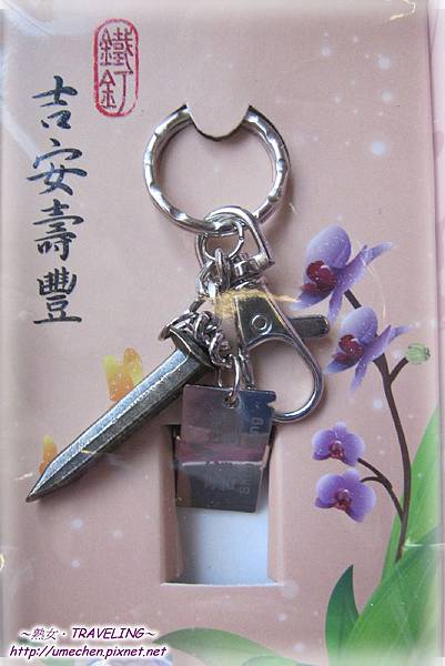 以前枕木的鐵道釘,現在已經沒有使用了,做出鐵道釘模型的飾品,也可以當鑰匙圈。鐵道釘本身具有〝添丁〞之涵意,再搭配4款〝永保安康、追分成功、吉安壽豐、榮華富貴〞字樣,熟女也買了一個。