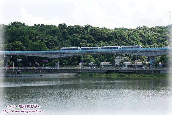 所以健行一開始,看到非常有名的大湖公園圓拱橋,心情一整個興奮起來,即使半圓形的圓拱橋正在維修中,被醜醜地包了起來;大湖公園環湖區域有大半圍了起來施工中,但還是在走了一段路後,看到整個大湖公園的面貌,也看到捷運廣告曾有的畫面──捷運通過大湖公園湖面上方。