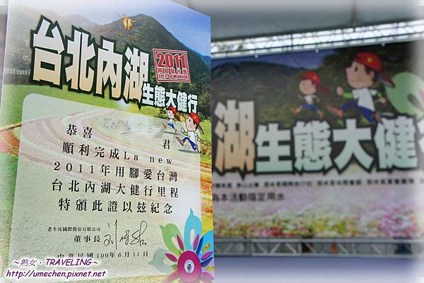 回到大湖公園捷運站,將條碼丟進抽獎箱,領取完成十公里健行的證明書。在打算回家時,發現 Law New 的十公里大健行已經滿十週年了,此次活動特設一區展示十年來的健行點滴,許多人和熟女一樣,這幾年來參加了好多次 Law New 的十公里大健行,看到歷年來的活動照片,心中有種很紮實的感覺。