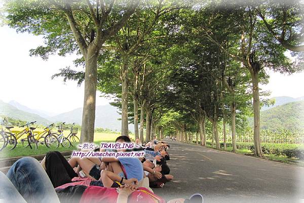 「龍田村」這個河谷與群山環繞的平野,實在是個好地方。我們騎單車遊覽一圈,參觀了龍田國小及日式建築,打竹筒炮,認識鳳棃。更參加了〝躺馬路體驗〞,躺在綠色隧道的車道上,不怕往來車輛,用不同的視線和角度去看、去聽我們原來習以為常的世界,這真是一趟奇妙的體驗。