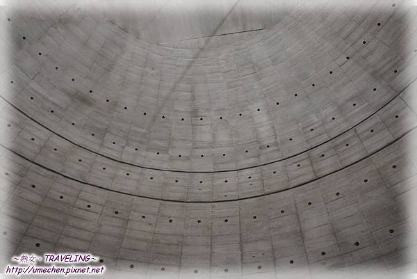 不論天花板、上頂層的迴旋通道或是管理處的狹長走道,因為每走一步,人與空間的互動與相對位置都跟著變化;因為色調是單純的,造型是曲線的,反而突顯了空間感。人在其中,感覺容易專注在某一點上,不要太快步,或許你也會和熟女一樣,有這樣類似的體驗哦!