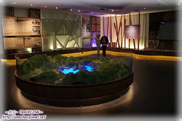 由藝廊再往裏頭走,到了另一間展覽廳。房廳的中間是日月潭的立體地圖,很多人會在這裏〝指指點點〞的,一眼看清日月潭面目,也很有意思的。週圍的展示則是著重在日月潭的自然景觀、歷史,與原住民的文化采風錄。