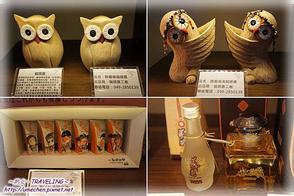 日月潭週遭地區的農特產、工藝品,都已經被有系統地整體設計與行銷,像小米酒即使你不喝,光是瓶身、酒名與專屬圖騰或公仔圖案,很多人沖著造型而帶回家蒐藏。又或者是很多人曾遊覽過的紙寮、陶窯或梅子茶葉等特產,現在都精緻得像藝術品或禮品,讓人看了不禁豎起姆指稱讚。
