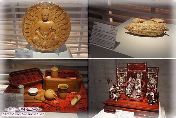 在〈多媒體影音播放室〉的正對面,門口貼有該次的展覽介紹。熟女是暑假期間去的,當時展出「山中傳奇:竹木名師主題展」,雖然展區不大,但覽出作品可不隨便,也因為展出規模不大,和一般特展或大展有所區隔,對一般遊客來說,不會有太大的壓力,能自在地親臨一場藝文洗禮。