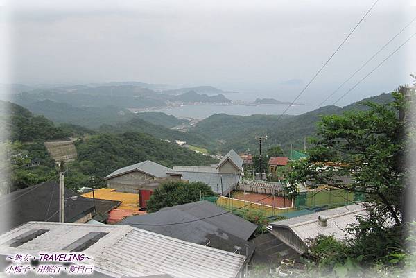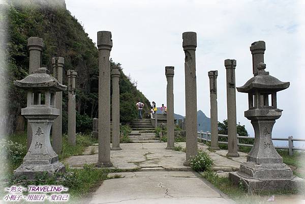 其實有一大段時間,熟女在爬山。我往山腰上的〝黃金神社〞走去,在僅斷柱的舊址登高望遠,那兒風景真棒,整個金瓜石一覽無遺,連海邊、對面的「茶壺山」都清清楚楚的。後來我獨自一個人又續往山上走,妹妹待在神社叉路口等我。