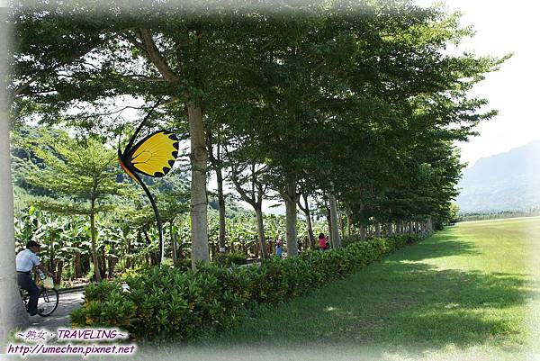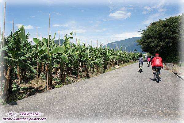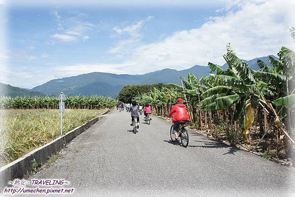 現在來到龍田村,首先會被它棋盤式的街道給吸引,再來是整齊又乾淨的馬路旁,一畝畝的鳳棃、釋迦、香蕉、茶樹、生薑……等農田,以及一排排的小葉覽仁樹、台灣欒樹、檳榔樹與黑板樹等行道樹,加上很少很少的車輛與人潮,幾乎沒有什麼紅綠燈,騎起單車來,真是愜意極了!來到台東,騎單車真的是最棒的行程安排呀!