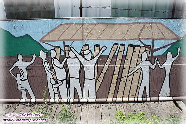 體驗龍田村的田園與村舍之美,經過無數的果園後,我們抵達一處小農舍,屋牆彩繪著大黃色鳳棃、花生、群鹿,還有一群人在打竹筒炮。吔!沒錯,我們真的要來打竹筒炮。