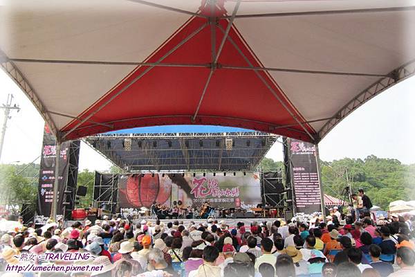 最後又走回主會場,此時蓋完最後一個集章,將明信片交給臨時郵局,他們會免費幫我們寄回家。主會場下午的重頭戲是〝桐花客家音樂會〞,我們正好欣賞了長榮八重奏的音樂會,真是最幸福的桐花美樂呀!