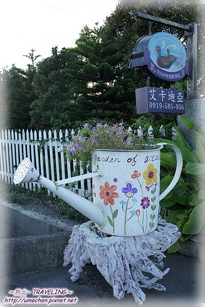 民宿主人問我為什麼選擇「艾卡迪亞」,熟女回答:「庭院」。因為那片綠綠的草皮,陽光下會閃閃發光的彩繪。民宿主人似乎有些驕傲,是因為有人僅透過網路上的幾張照片,就意會了他們努力塑造的家的夢想嗎?呵!
