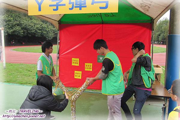 2012「用腳愛台灣.新竹十八尖山大健走」集合地點在學府路的培英國中操場,這可是熟女小梅子我初次踏入這校區吔!照例刷了條碼報到後,準備開始健走,發覺這次在操場安排了好多的遊戲哦!心裏還想此回怎麼那樣有心,除了表演節目還有遊戲呢!後來走完全程後才知道為什麼。
