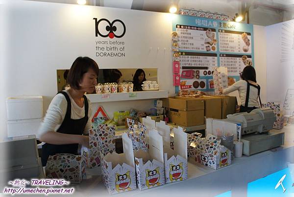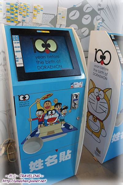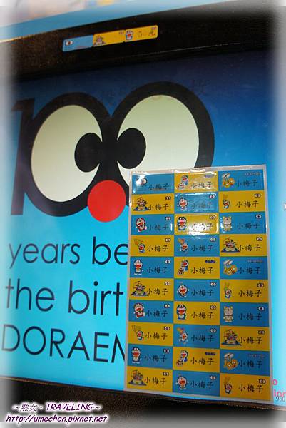 在商店出口處,有兩台貼紙機,一定要買一張的啦!雖然每張50元的價格,較外面的貼紙貴好多,但是圖案是《哆啦A夢誕生前100年特展》的限定版嘛!熟女我和妹妹都各做了一張。