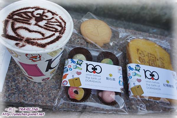 除了紀念品,還有《哆啦A夢誕生前100年特展》主題CAFÉ和美食哦!我們看完展後,也買了幾項來品嚐,比較起來這些食物真的比紀念品貴太多了。