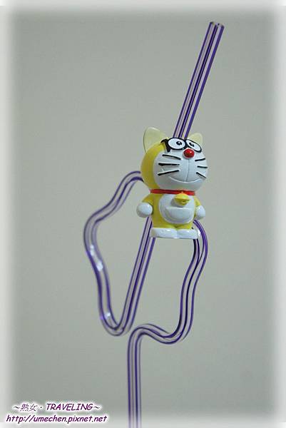 吸管本身有造型,上頭的哆啦A夢可以拿起來玩。我選的是尚未變成藍色、耳朵還在的黃色哆啦A夢,我建議選紀念品時,多幾樣這種黃色款的,因為只有《哆啦A夢誕生前100年特展》才有哦!