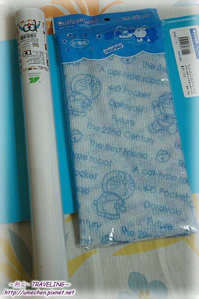 妹妹買了這款洗澡巾,抹上肥皂後,哆啦A夢就會陪著她洗澡吔!嘿!其實這麼多日常用品中,我最想買的是洗衣刷啦!