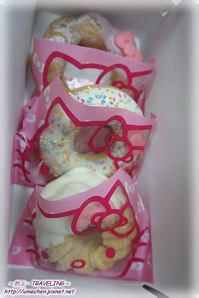 Hello Kitty 的蝴蝶結,跑到甜甜圈上面囉!