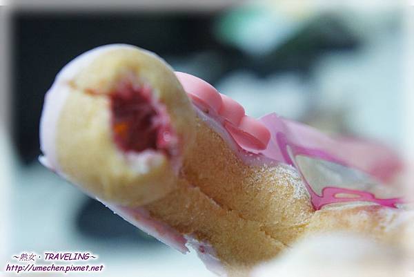 〝莓果波堤口味〞原本只有草莓鮮奶油,現在添加了藍莓和桑椹做內餡;波堤的口感則是Q彈Q彈的,夾著酸甜的內餡,加上表層淋了粉紅色的草莓巧克力醬,真的很不錯吃!
