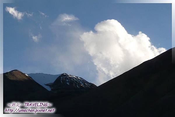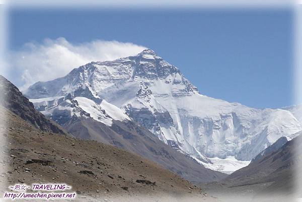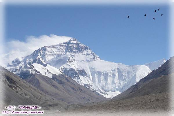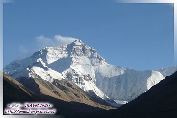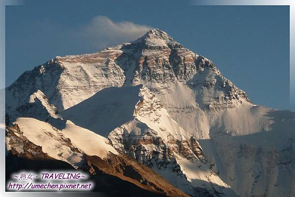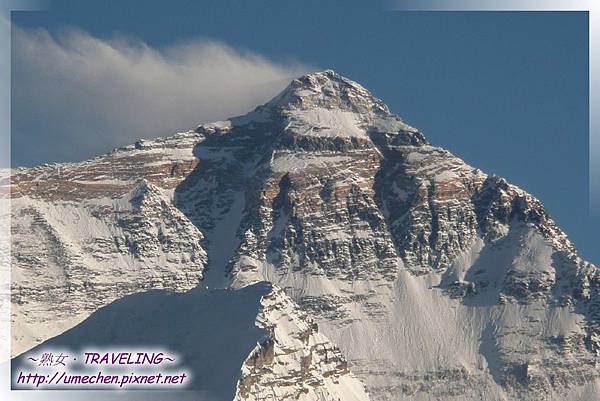 非常幸運地,熟女小梅子和「珠穆朗瑪峰」(珠峰、聖母峰)碰面的這三天,老天爺都相當賞臉,晴朗少雲,珠峰完全露臉,又秀出著名的〝旗雲〞。
