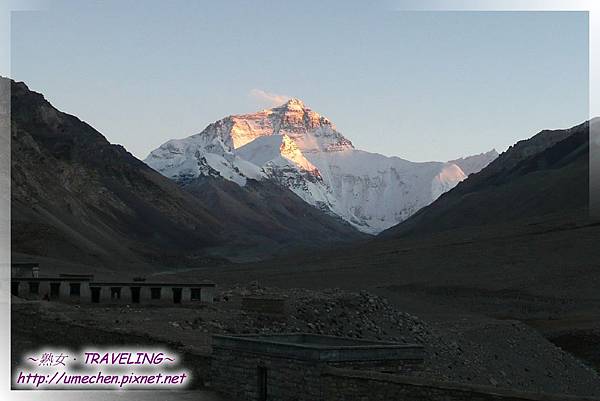 更何況,我們住宿的「觀景台賓館」,窗外就是世界第一高峰,不必出門即得見著她的日出與日落,儘管這五千多米的海拔在少了陽光的照耀下,鐵定嚴寒逼身,但絕對阻擋不了遊子的任性。