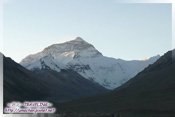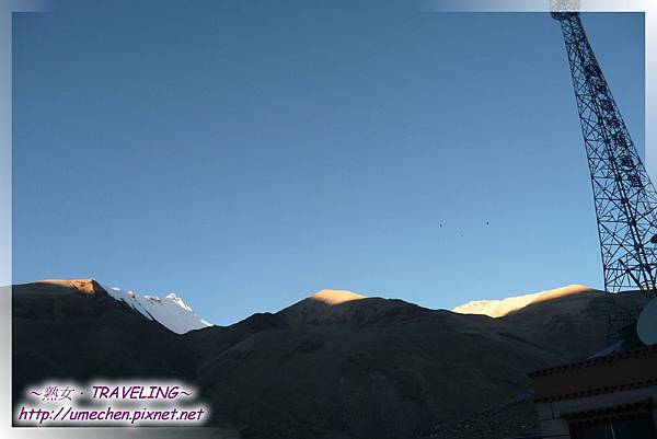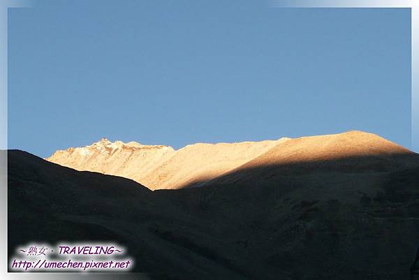 容熟女我坦誠,因為珠峰北麓地理方位與我們所處的賓館地點,並未正面向著太陽昇落的東西方向,世界第一高峰的日照金山、日照銀山,其實並不甚出色,稱不上漂亮的金光、銀光。但畢竟她擁有世界第一的無比榮耀,我們依舊不畏寒冷,遠離被窩,起了大早,為我們的珠峰之旅填滿完整頁次。