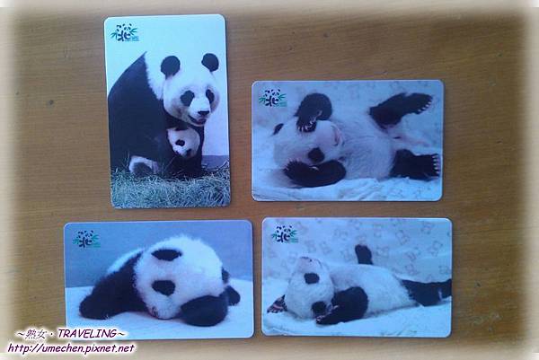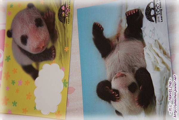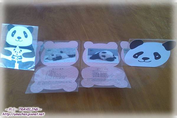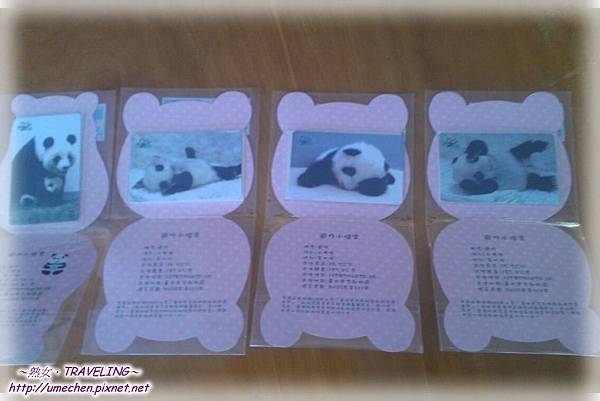 £¤ 第一款有包含一張貓熊母子卡通圖案的卡片,第二~四款則是貓熊大頭卡片,裏面寫著圓仔出生的各項數字和記錄。