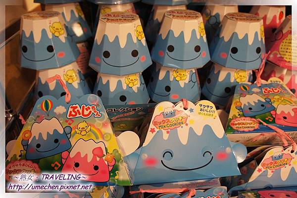 本來以為,可能須不時特別注意才能尋得目標物。豈知,到了日本山梨縣,光是富士山造型的巧克力,樣式就多到我買不完,再包括其他的餅乾、和菓、吊飾、文具、杯子……,絕對可以塞滿一間百坪大的店面,簡直讓人對日本人創意商品的設計,欽佩到五體投地!