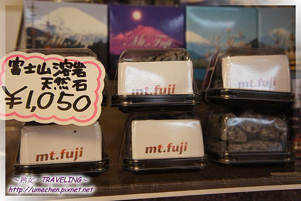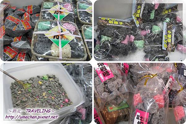 沒錯!直接將富士山上的火山溶岩天然石,一塊塊地包裝成袋、成盒,有的染成各種色彩,這樣也能賣錢哩!