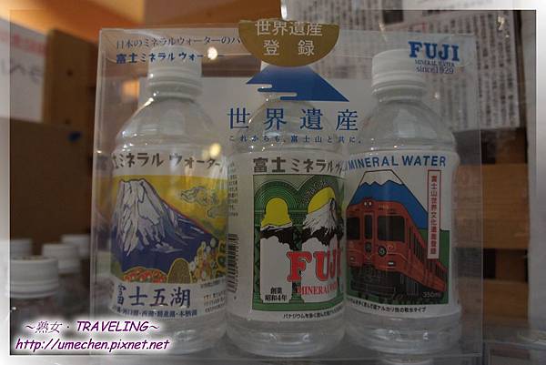 富士山五合目商店、旅客中心,有販賣三個一組的〝世界遺產登錄〞紀念礦泉水,圖案是富士五湖、日出、火車。說真的,我當時超想買回家,即使現在看照片,還是很喜歡這組紀念版,只是因為我是帶登機箱去日本的,應該塞不進行李箱而作罷。