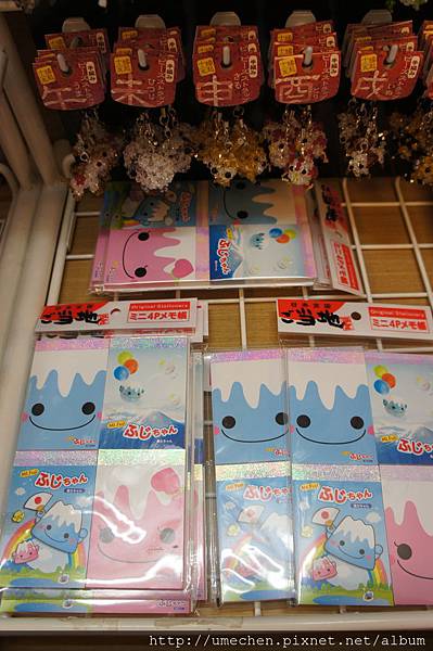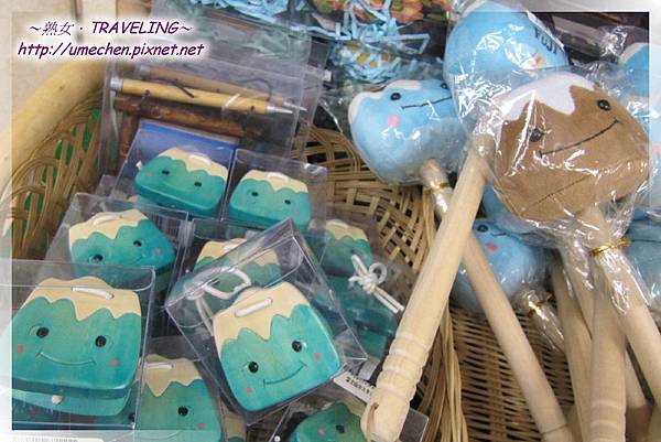 富士山也有吉祥物,是一藍一粉紅的富士寶寶,代表一男一女,兩雙小手高舉,加上笑臉,讓富士山擬人化。當然也推出不少富士寶寶紀念品。
