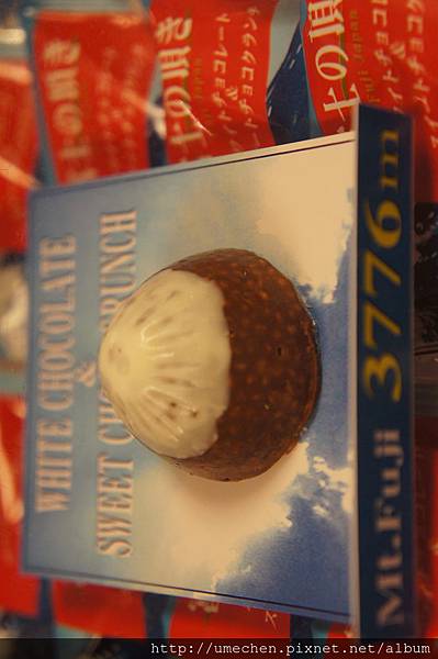 開頭說的,巧克力做成富士山的火山造型,加上白色巧克力就成為雪景;若山頂是草莓口味的粉紅巧克力,就是象徵火山爆發囉!這種巧克力比較具有紀念價值,立體又有造型。