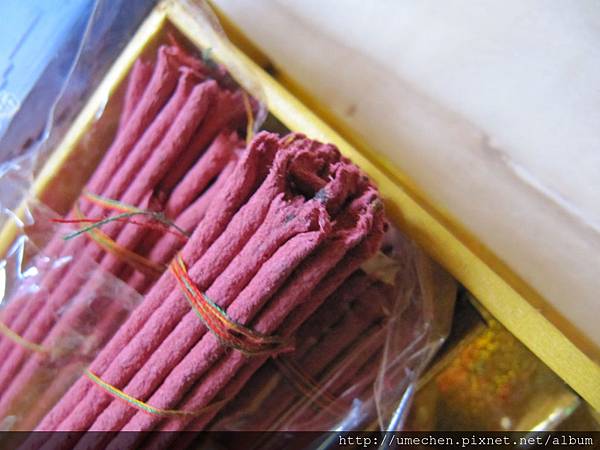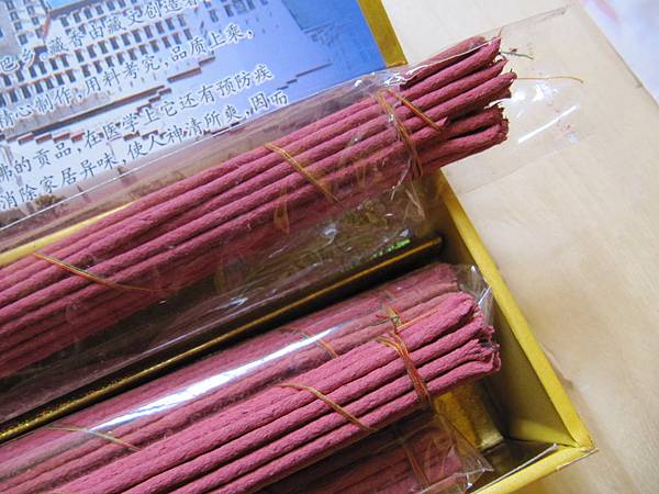 最後一道啦!包裝。整理一根根的藏香並捆紮,因藏香並不是像我們常見的香,以細竹條沾裹香粉,藏香整條都是柏木泥做的,易斷,所以捆紮時得像握住嬰兒小手般地輕柔,用紅藍色棉線繞約8~12圈,即成外頭看到的藏香。(紅藍色棉線代表神佛的加持)