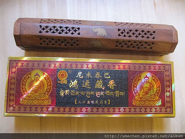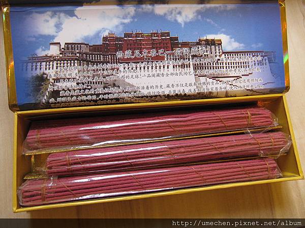 回到車上,許多同伴買了路邊販賣的藏香,我完全沒逛到呀!沒想到,就是有人瞭解我,自動幫我買了一包藏香,包含一座燒香木盒,而且還是〝團購價〞哩!至今,這套藏香及木盒,仍供在我房間的佛桌上。