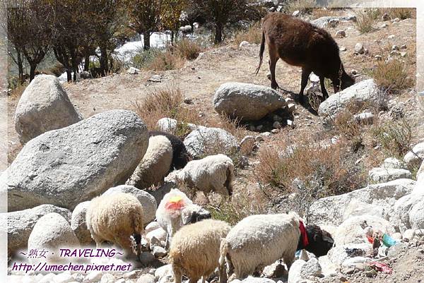 進入「尼木縣」,經過了「尼木大橋」,車隊又停下來了。不同前面幾處停車地點,這裏有攤販吔!呵!沿途真是少見,熟女也沒去逛,而是和大部份的團員,一股勁地往馬路對面走。