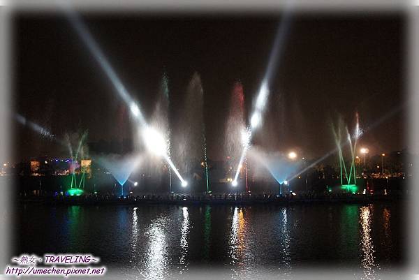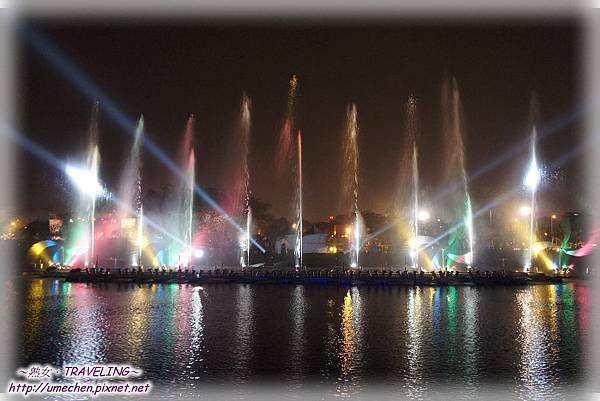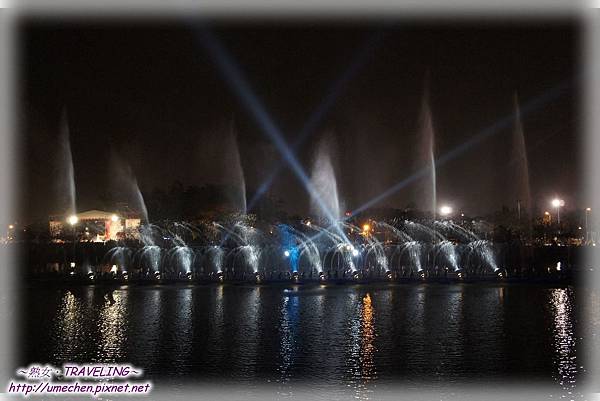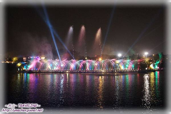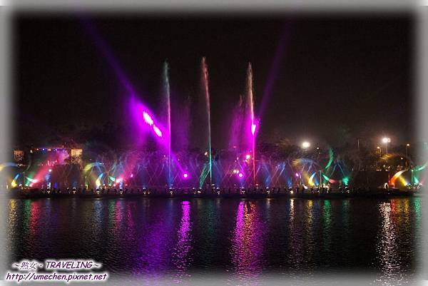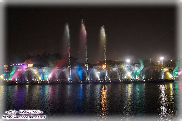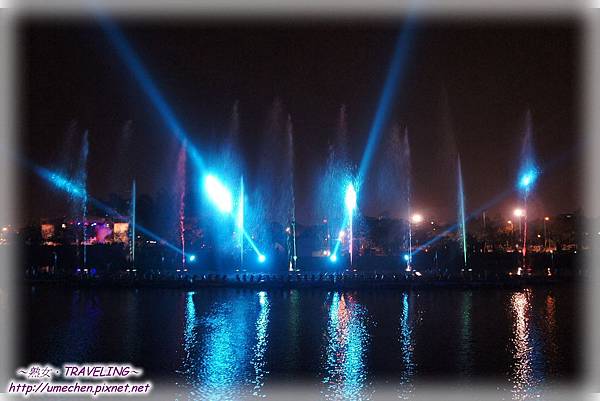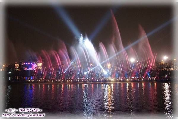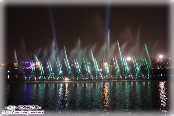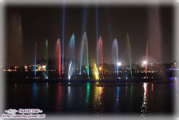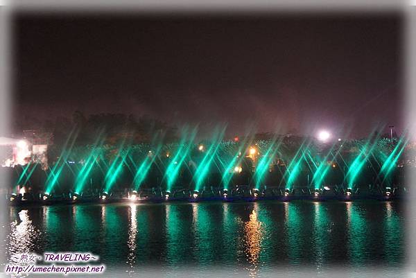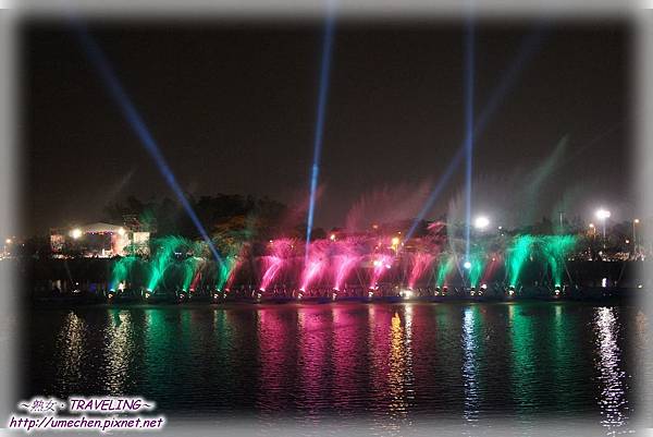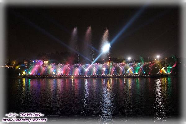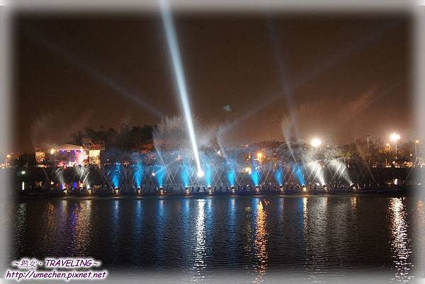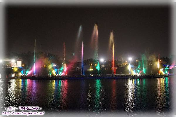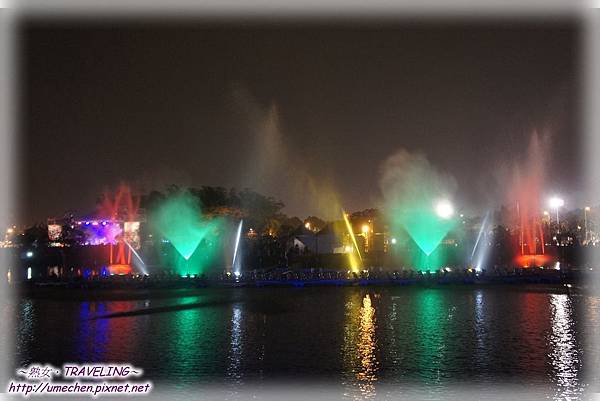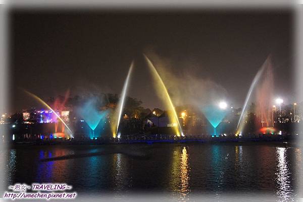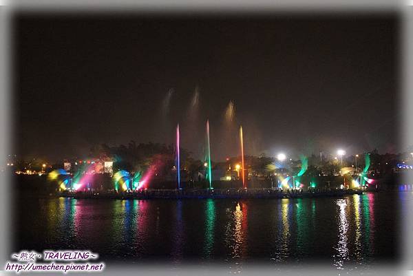 岡山燈會的場地:河堤公園,公園中間是水池,池濱有二層樓的觀景台,有著地利之便,是很好的水舞場地。