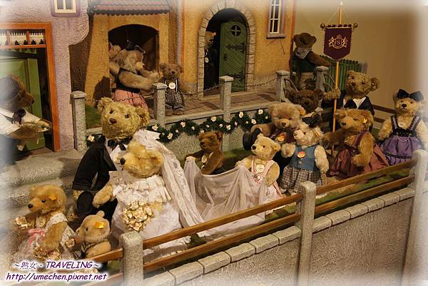 現場展出一組〝熊熊的婚禮〞,場景與場面製作相當精細,每隻小熊的動作與神情均生動而細膩。旁邊有一按紐,只要你輕按一下,小熊們隨著響起的音樂移動或舞動,整個婚禮突然熱鬧了起來。