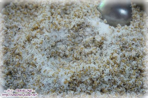 用大盆子或容器,倒入豆粕、糖,以體積三比二的比例調勻。(100塊的鹽豆腐,約3斤的豆粕)