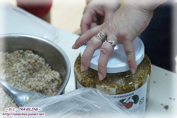 裝好後,在罐口舖上一張塑膠袋,將罐蓋關緊,放在陰涼處保存45天,即可食用哦!