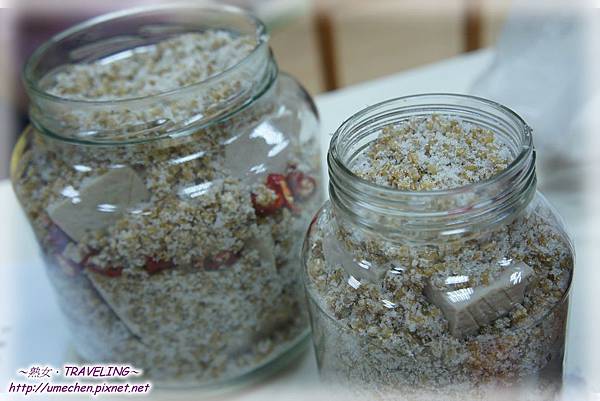 呵!做好豆腐乳後沒多久,熟女我被派至大陸二個半月,回國後趕快把我的豆腐乳拿一罐出來,先夾一塊來品嚐。