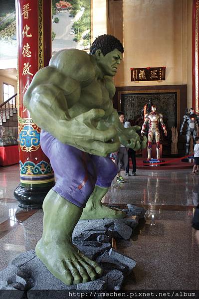 依「文衡殿」臉書的敘述,〝綠巨人浩克〞及〝浩克毀滅者〞和前面六尊大模型一樣,均非廟內香油錢所購,同樣都是他人捐贈的,擺在殿內供民眾參觀。即使廟方知道不少民眾非信眾,只是來看大模型,但廟方仍然歡迎大家前往龍崎一遊,讓全區幾乎均為山丘的龍崎區更添人氣。