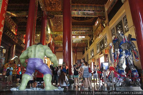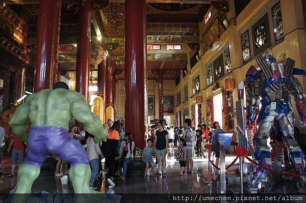 熟女小梅子造訪「文衡殿」時,正值安裝完成後的週休二日,也剛好有活動,所以整個殿內殿外熱鬧滾滾,要拍照得有些耐心,因為實在太多家長帶小朋友們來看大公仔。若有朋友不喜歡太多人,建議非週休日或暑假過後再造訪較適合些。