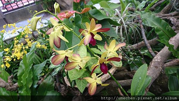 ¤ 黃寶石石斛:三個花咢為鵝黃色,花瓣為紅褐漸層,唇辦則為深紅褐色,淡色系似乎承托起花瓣和唇辦的深色系,如其花語,予人堅毅之感。