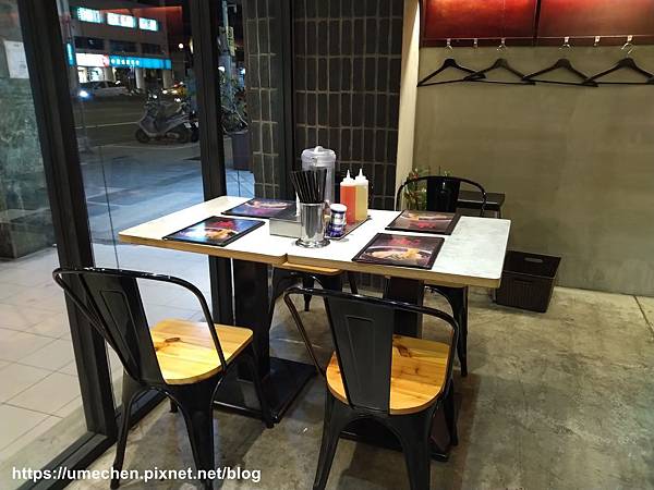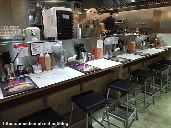 座位區有二種,一為圍著工作人員作業區的吧台式座位,所以一個人來用餐也不尷尬;另一類座位為常見的4人對坐式桌椅,兩桌之間擺得很寬鬆,不會有和鄰座靠太近的壓迫感,這在忠孝東路餐飲店面來說,貼心的設計呀!