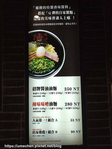 點餐時刻,當然鐵定要來碗招牌油拌麵。乍看價位會覺得東京油組総本店的麵食價格偏高,熟女認為人家有辦法日本開到台灣,而且在台灣開4年了還穩若泰山,一定有它的本事與特性。