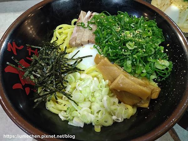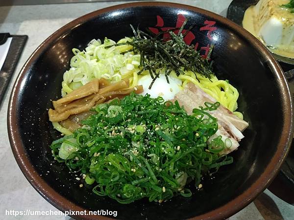 東京油組総本店的油拌麵真的不辜負其定價,每一根麵條都保有令人難忘的Q彈性,就是覺得和自己以前吃的麵條不一樣,值得一根一根細細咀嚼;而那完全不怕你吃的大把葱花也是魂靈角色,真的好吃得沒話說。